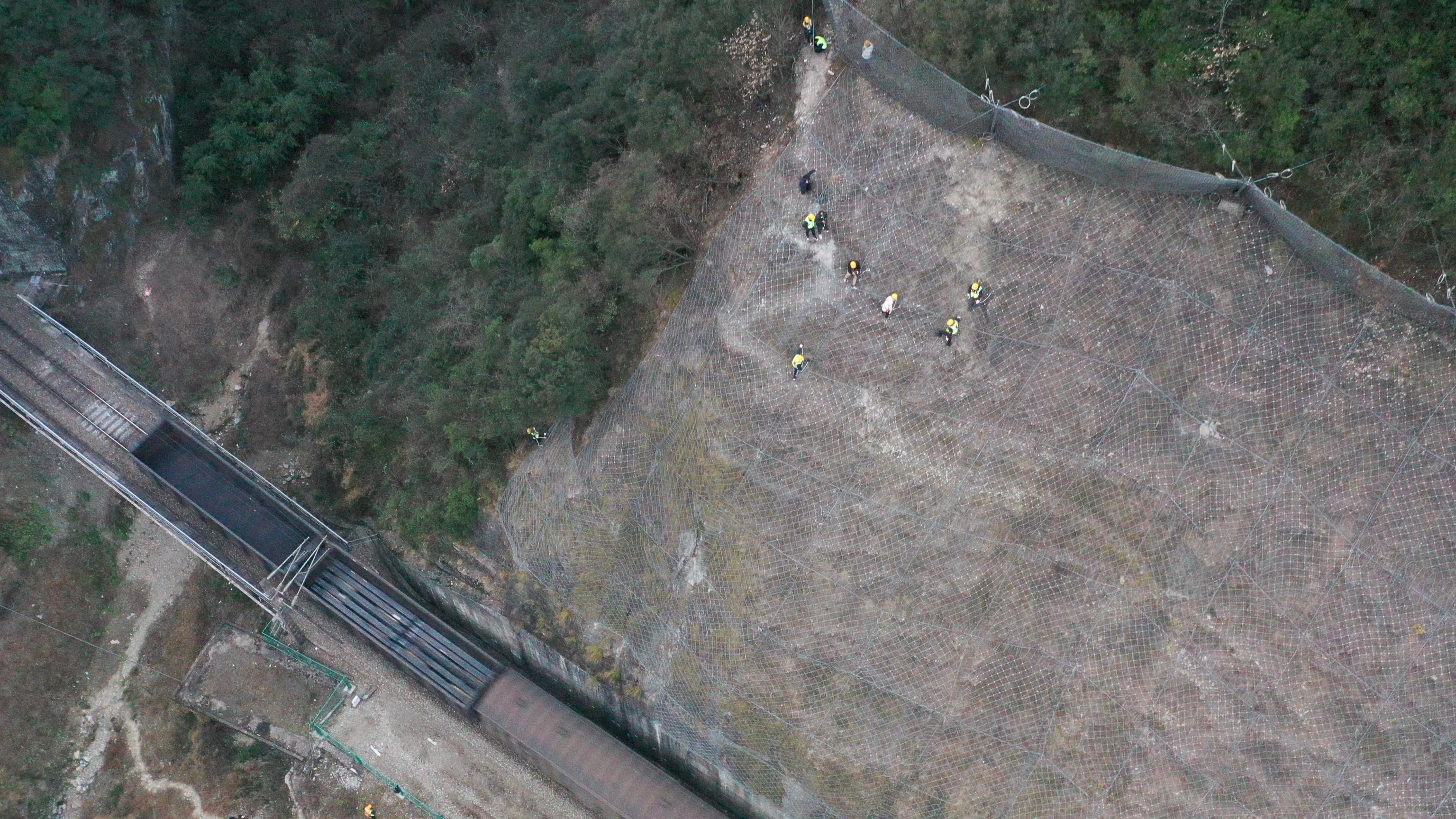 蔺志刚是国铁西安局汉中工务段的一名桥隧工,每天头戴安全帽、腰系安全绳、手握钢制钎,在铁路沿线的防护网上攀爬,仔细搜索和处理松动的岩石。